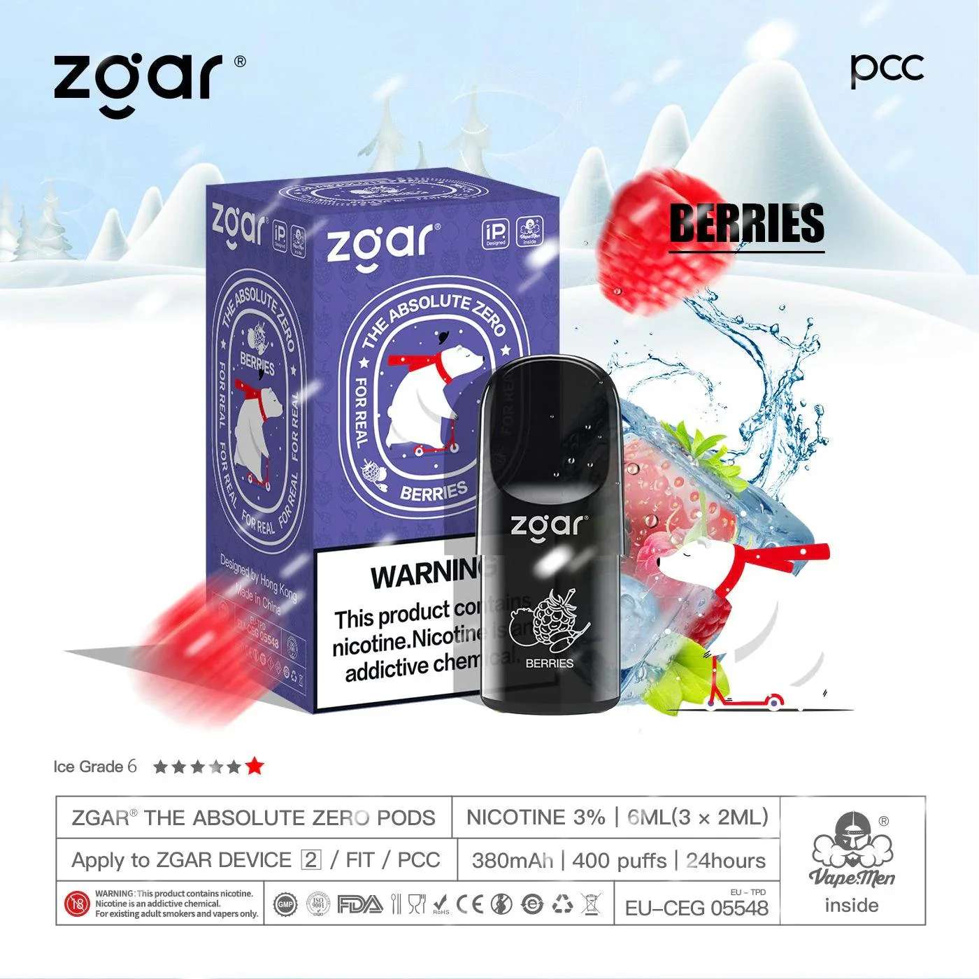 美版冰熊ZGAR Pod 4/5代莓果(Berries)三颗装烟弹-悦刻RELX海外四五六代/国标烟杆可通用